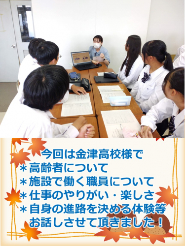 ガーデンハイツ春江の生活相談員が2年生のクラスで 高齢者、介護施設、施設で働く職員、そして自身の体験談等お話しをさせて頂きました。 みなさんの参考になれば嬉しいです。 もっとフクシについて聞きたい方は施設見学にお越し下さいね。お待ちしています!