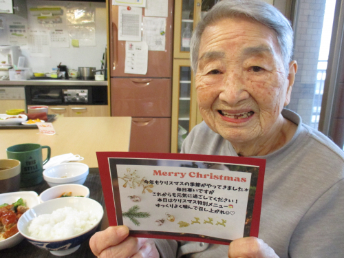 そして、今回のクリスマスでは栄養部より利用者様全員にポストカードを作成して