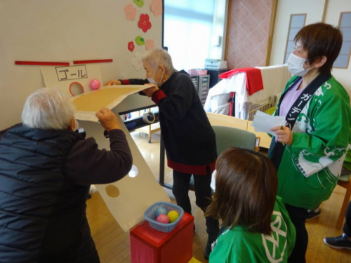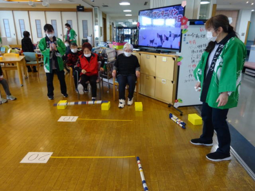 午前中は棒飛ばしゲームやピンポン玉レースなど4種類のゲームを行いました(^^)/