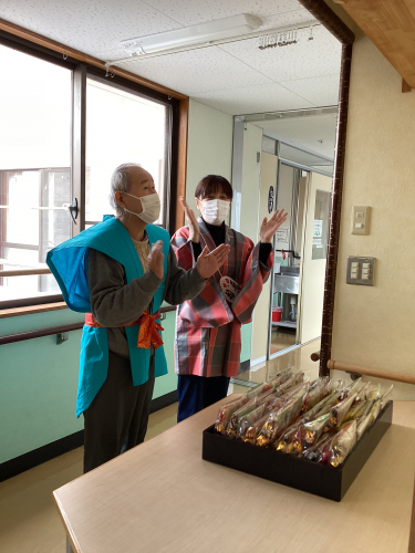「パン!パン!」「お願いします。(^^)!」 福豆もご祈念!
