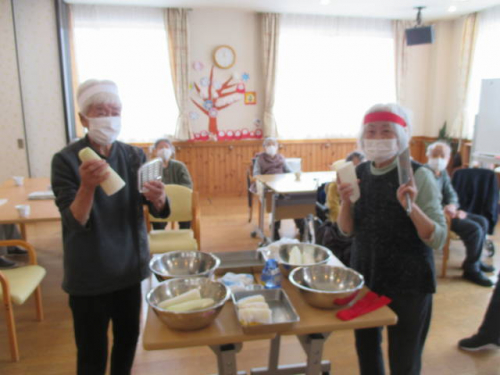 大きいサイズの大根は「大根おろし大会」でおろし「大根餅」を作りました★