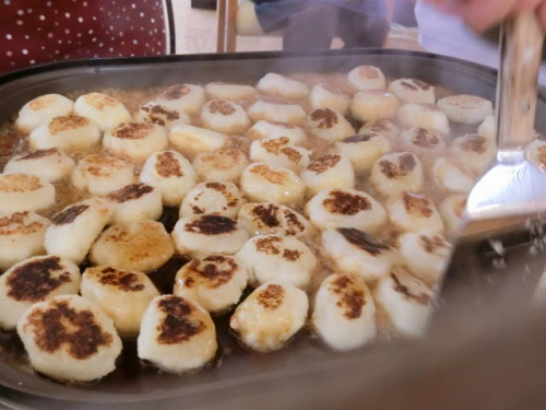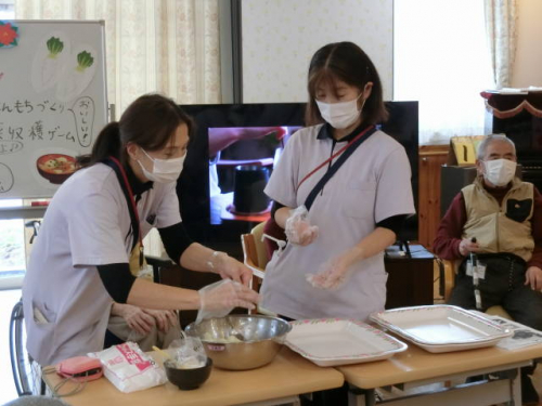 みんなですりおろした大根と片栗粉を使った「大根餅」は