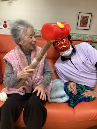 ご利用者様は皆さん「わあ!」と笑顔になり、棒で鬼を退治されていました!