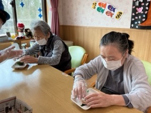 また、3月の行事では「桜餅」づくりを行いました。